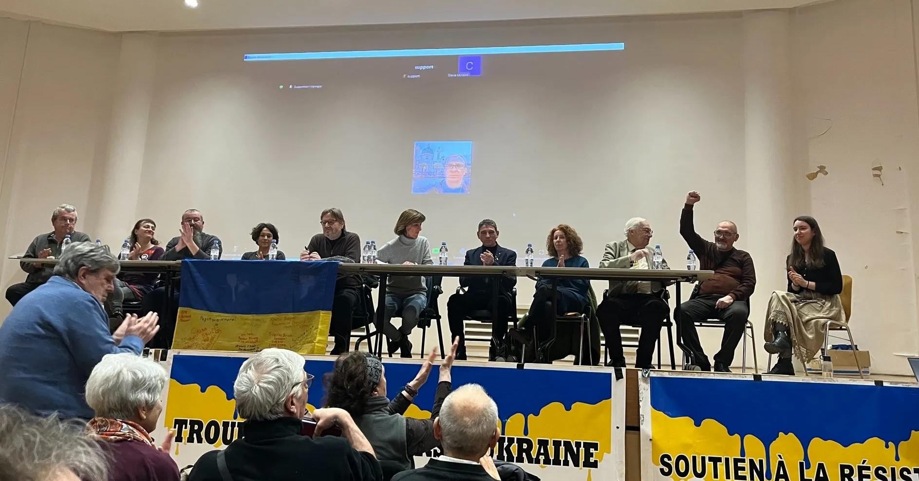 L'evento si è concluso con gli interventi di tre rappresentanti (Solidaires, Fsu e Cgt) dell'intersindacale francese che sostiene i sindacati ucraini e della Rsisl, che hanno illustrato le varie iniziative di aiuto materiale e i convogli internazionali a cui hanno aderito. Cybèle David della federazione Solidaires ha invitato a continuare a «sostenere la resistenza sindacale e popolare in Ucraina, nonché la popolazione bielorussa e quella russa che si oppone all'invasione» e a venire a manifestare a Parigi e in altre città.