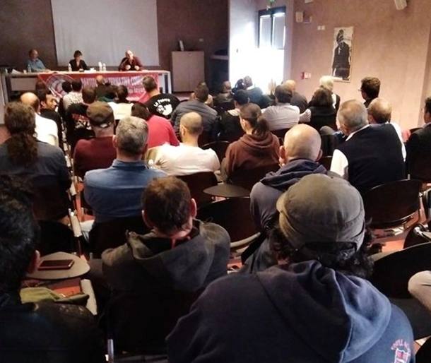Dopo l’intervento dei tre relatori vi è stata un’ampia discussione, arricchita dall’intervento di molti compagni. Ricordiamo in particolare l’intervento molto toccante di Luis Seclen, attivista del Fronte di Lotta No Austerity (Flna) e della Cub Monza, proprio in questi giorni sottoposta ad un vile attentato intimidatorio. Luis ha fatto intendere che gli operai non hanno alcuna intenzione di farsi intimorire e che questo attentato ha, al contrario, amplificato la solidarietà degli operai delle altre sigle sindacali, che si sono uniti alla manifestazione indetta dalla Cub di Monza. Un grande applauso di solidarietà è stato tributato a Luis e agli operai presenti.