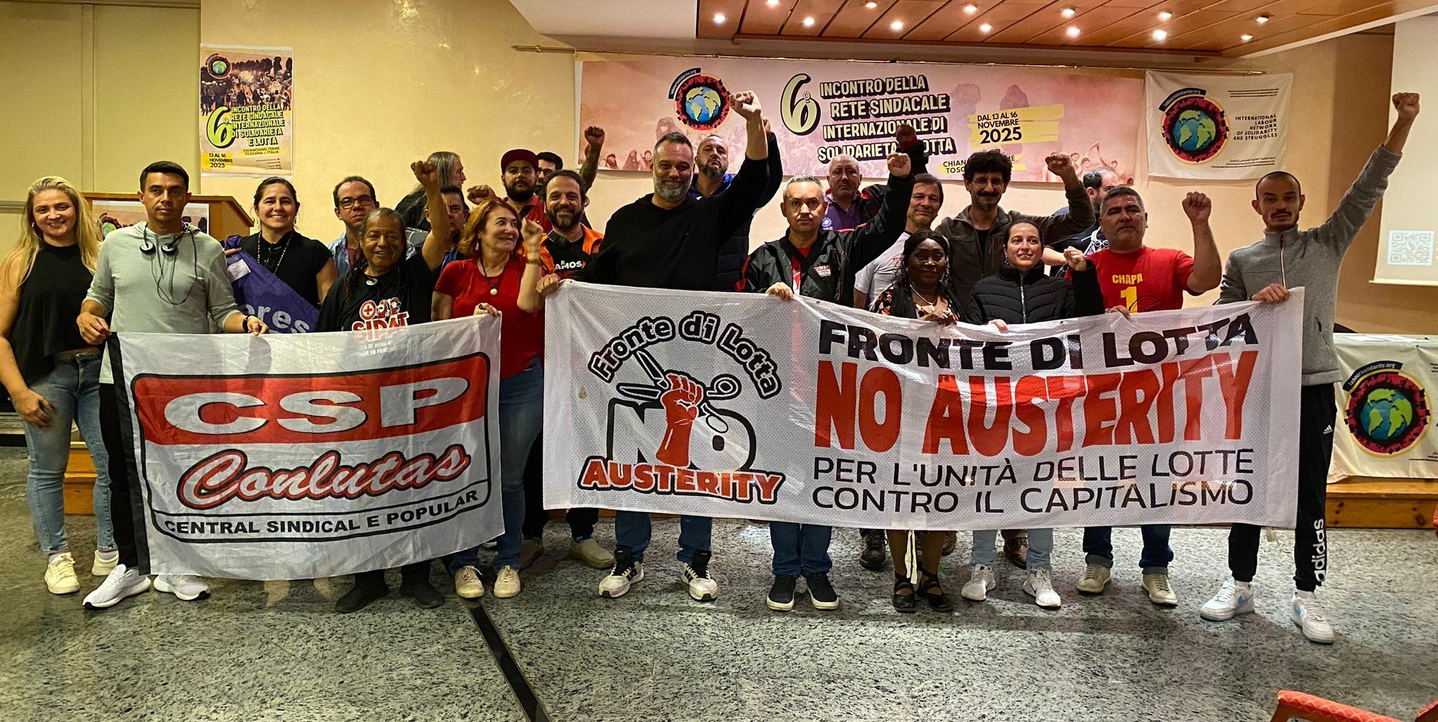 Dal 13 al 16 novembre, a Chianciano Terme (SI), si è svolto il sesto incontro della Rete sindacale internazionale di solidarietà e di lotta, un coordinamento internazionale che raggruppa alcune tra le principali organizzazioni sindacali conflittuali e di base del mondo. Fin dall’incontro fondativo (Parigi, 2013), gli attivisti sindacali del Pdac e della Lit-Quarta Internazionale sono stati parte attiva nella costruzione di questo coordinamento internazionale, l’unico che ha tra le sue discriminanti l’opposizione ai governi borghesi di tutto il mondo.