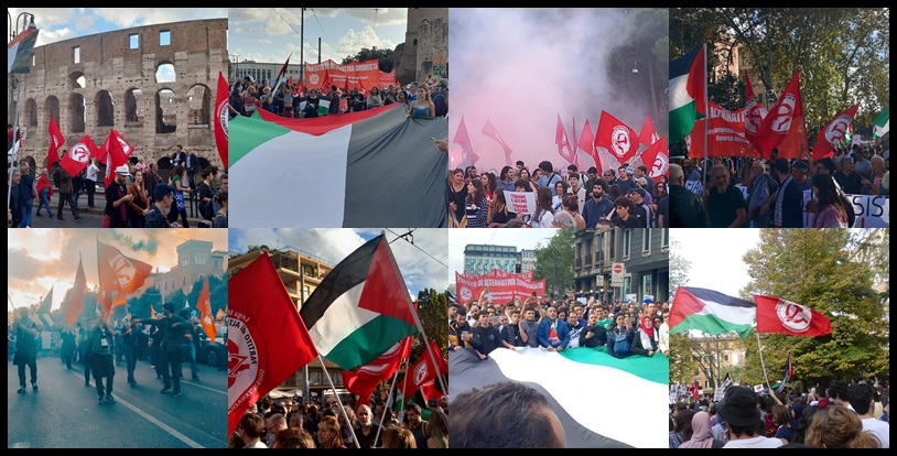 Sabato 28 ottobre, mentre Israele stava sferrando un brutale attacco sulla striscia di Gaza, Roma è stata percorsa da un corteo di 20 mila persone che hanno gridato il loro appoggio alla Resistenza del popolo palestinese, da 75 anni alle prese con una delle più violente oppressioni che la storia dell’umanità abbia mai conosciuto: l’oppressione sionista dello Stato d’Israele, uno Stato fondato su leggi razziali, che continua a mettere in atto un genocidio.