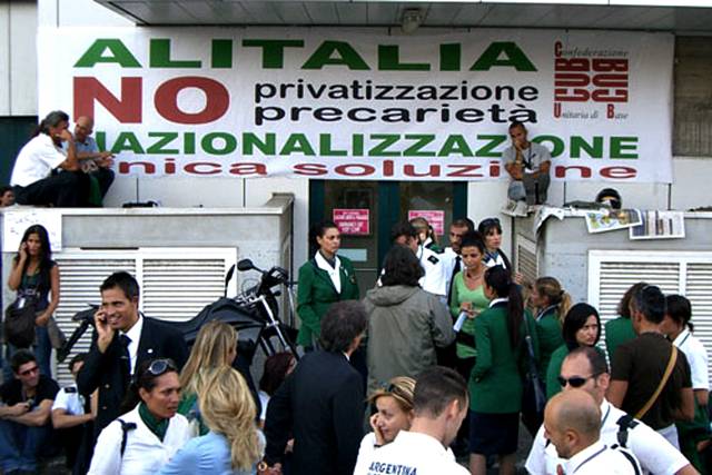 Alitalia credo sia l’esempio per eccellenza del fallimento delle privatizzazioni, inoltre la sua storia recente ha messo chiaramente in evidenza la collusione tra governi borghesi e padroni: senza nessuno scrupolo hanno portato per ben due volte in bancarotta la compagnia di bandiera a carico della collettività, infierendo sulla carne viva di migliaia di lavoratori con licenziamenti e tagli draconiani a salari e diritti. Nonostante tutto ciò, ci vorrebbero propinare ancora l’ennesima cordata, con personaggi impresentabili e con compagnie aeree concorrenti che, come successo nelle esperienze precedenti, verrebbero solo a portarsi via gli ultimi gioielli di Alitalia con i suoi 21 milioni di passeggeri.