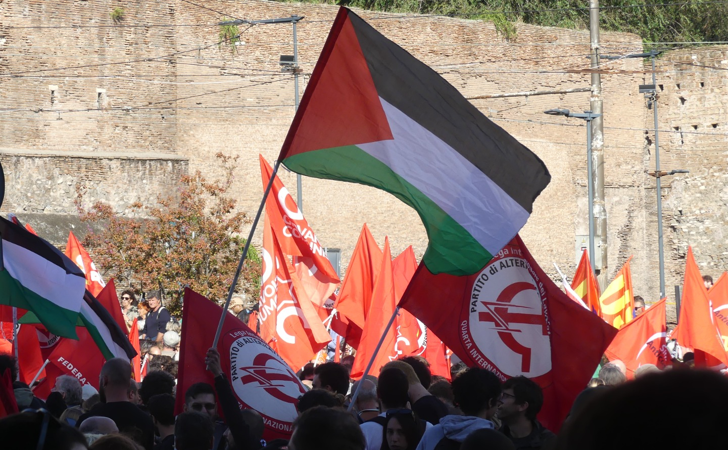 Il Partito di Alternativa Comunista ha aderito e partecipato alla manifestazione del 5 ottobre a Roma, promossa dalle associazioni palestinesi. Il 5 ottobre era una giornata internazionale in solidarietà col popolo Palestinese, con grandi manifestazioni in tante capitali del mondo, a un anno dal 7 ottobre, storica azione di lotta palestinese. Il governo Meloni, complice del sionismo, ha invece vietato la manifestazione di Roma, con il silenzio altrettanto complice di gran parte dell'opposizione parlamentare.