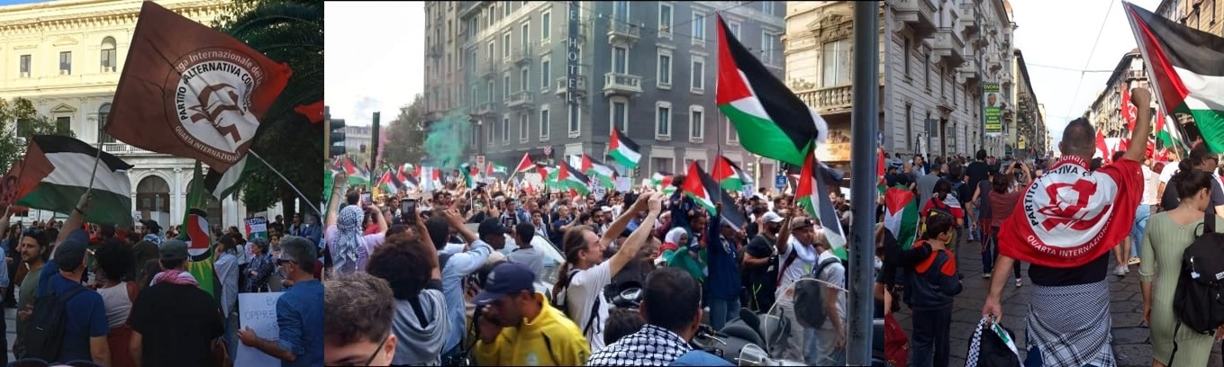 Decine di migliaia di persone sono scese in piazza sabato 14 ottobre in molte città italiane: da Milano a Torino, da Brescia a Bari, da Firenze a Pisa, le strade sono state letteralmente inondate da un fiume di persone che innalzavano la bandiera palestinese. Imponente la manifestazione di Milano, che è cresciuta di minuto in minuto fino a diventare un corteo di dimensioni che da tempo non si vedevano nella città lombarda. Nei giorni precedenti, manifestazioni analoghe, con grandi numeri, si sono svolte in altre città: molto partecipata la manifestazione di Roma di venerdì 13 ottobre.